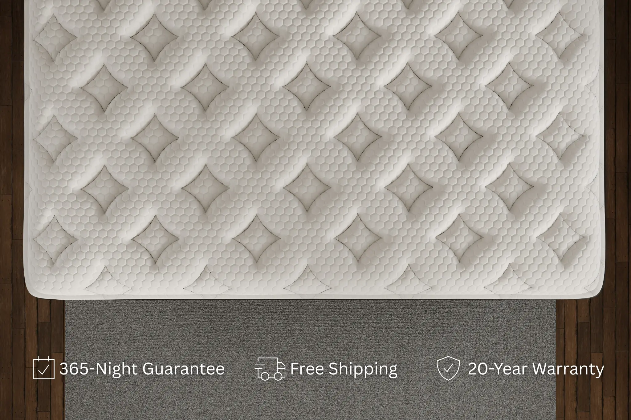 A stable, supportive feel with gentle contouring. The PolarHex™ quilted cover’s brick pattern adds light cushioning while helping keep your spine aligned—ideal for back sleepers or those who prefer extra firmness.